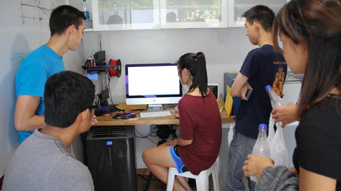 外觀上,BetaBoxes只是個普普通通的藍色集裝箱,里面卻別有洞天。一個標準的BetaBoxes包含一臺一臺PrintrBot 3D打印機、一臺3D Systems掃描儀、Leap Motion體感控制系統、白板、樹莓派(Rasperry Pi)、3D打印筆Doodler、Arduino、Solidworks 3D建模軟件、Adobe Creative Suite軟件、一套焊接工具、各種電動工具,一個Chromecast電視棒和Wacom數位板……可謂應有盡有。